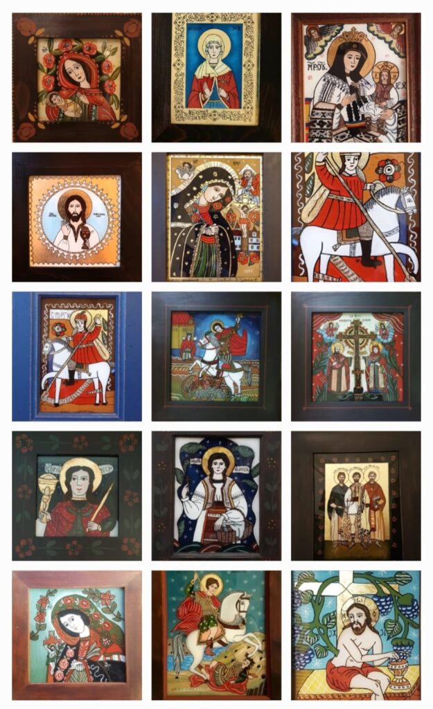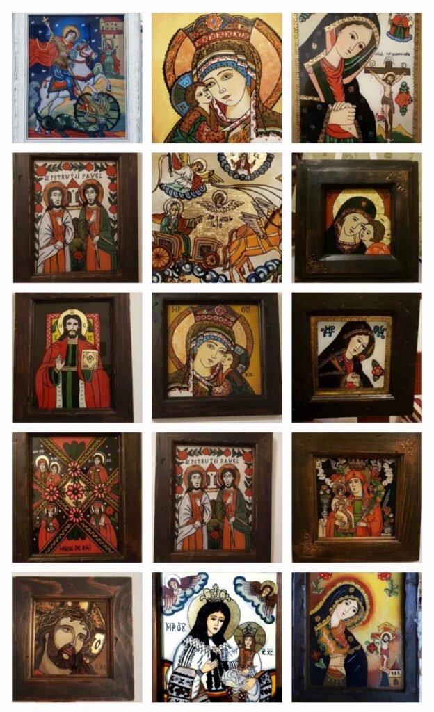 Meșteșugul a pătruns în Transilvania prin Mănăstirea Nicula. Arta iconarilor pe sticlăse caracte­riza printr-un desen naiv, dar foarte sugestiv fără proporții anatomice și de perspectivă, dar echilibrată cromatic.